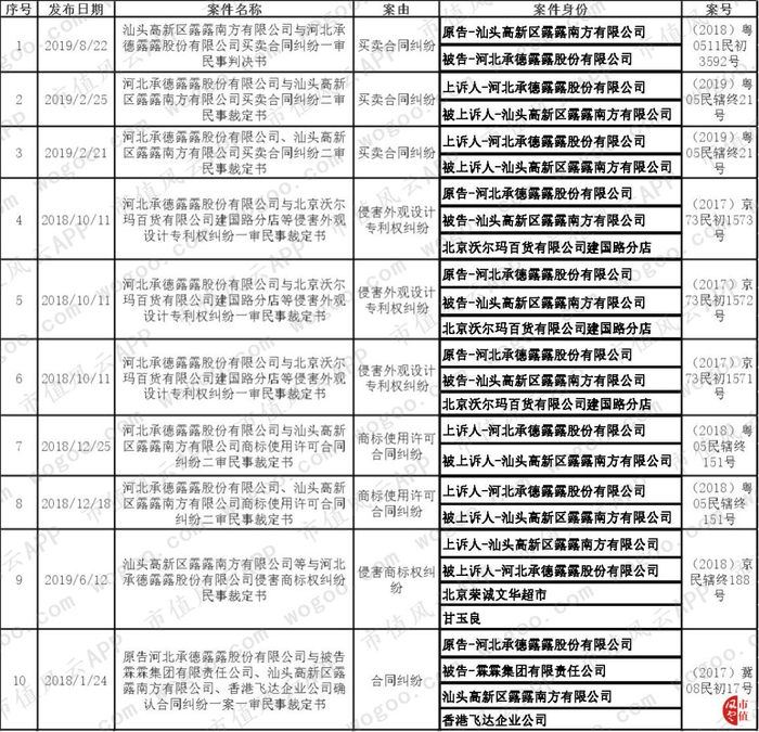 2015年起,承德露露开始频频对汕头露露提起商标侵权诉讼,指出《备忘录》和《补充备忘录》的签署未履行任何法定程序,造成承德露露拥有的商标、专利等无形资产使用权存在严重缺陷等,请求法院确认其无效,要求汕头露露停止生产、销售侵犯承德露露商标权的侵权产品。