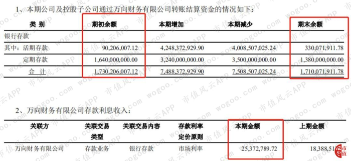 2018年末存放在万向财务有限公司的银行存款高达17.1亿,其中13.8亿是定期存款。但得到的利息收入仅0.25亿,年利息率仅1.48%。