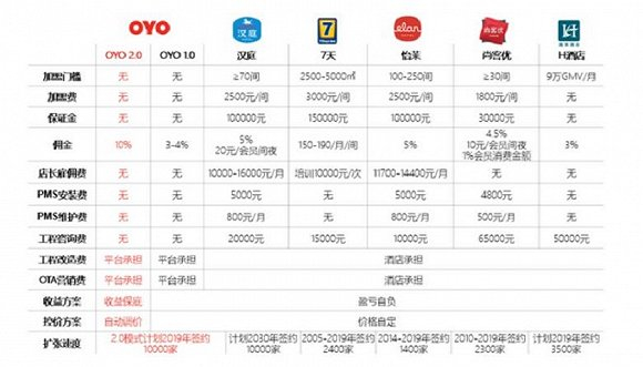 自2017年起,OYO酒店带着新的商业故事进入中国。2年过去了,OYO覆盖城市337座,加盟酒店1.3万家,房间量突破59万。OYO提出免收加盟费的“轻加盟模式”,本质上针对的就是大型连锁型酒店集团苛刻的加盟要求。