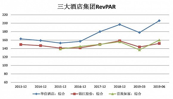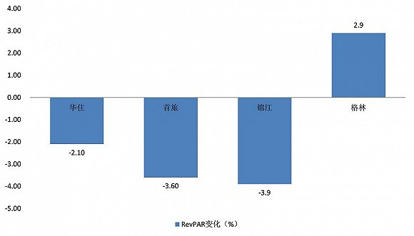 今年上半年我国三大酒店集团的RevPAR已经开始下滑。华住、锦江和首旅酒店的同店RevPAR分别同比下降2.1、3.9和3.6个百分比。