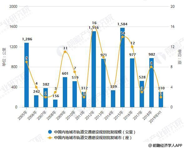 2005-2019年H1中国内地城市轨道交通建设规划批复情况