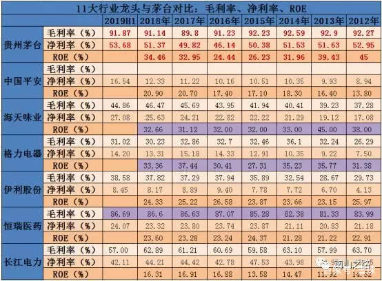 三、茅台与11大行业龙头公司对比