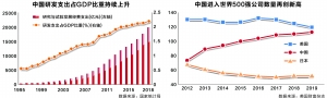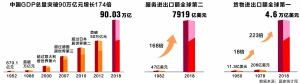 1950年中国货物进出口总额仅为11.3亿美元,1978年为206亿美元,居世界第二十九位。2018年中国货物进出口总额达4.6万亿美元,比1978年增长223倍,连续两年居世界首位。