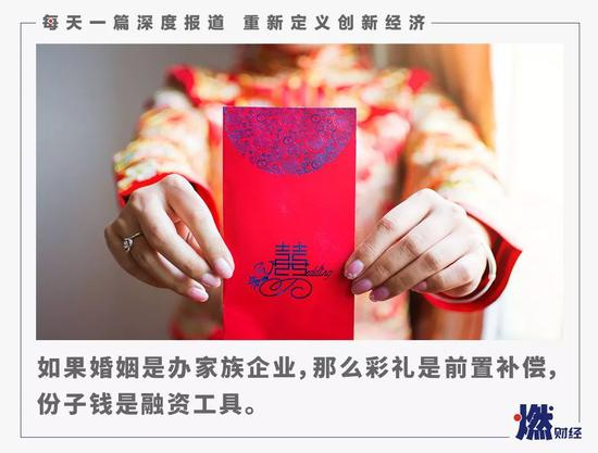 中国人民大学经济学院教授聂辉华告诉燃财经,彩礼在古代有补偿的意味。很多父母认为,把女儿嫁过去,培养女儿花了很多时间、金钱,需要对方给一个回报。古代嫁出去的女儿除非被休,不然不能回娘家,也基本不能为娘家做贡献,在这种情况下,彩礼作为一种经济补偿,是合理的。