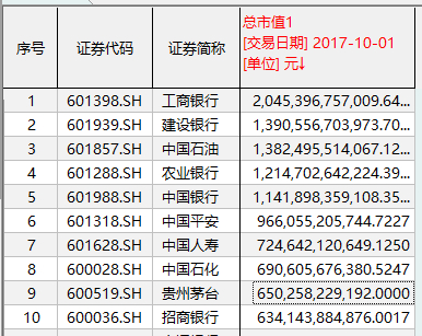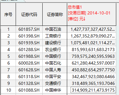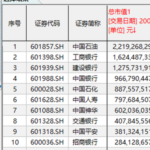 截至2009年10月1日,从排名前五的A股市值巨无霸来看,全部被石油石化和银行企业所占据。其中,只有1家公司超过2万亿元市值,那就是2007年登陆A股的中国石油。