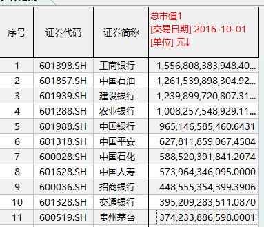 截至2016年10月1日,中国平安已经悄然排名到第六位。此外,贵州茅台再度晋升11位。