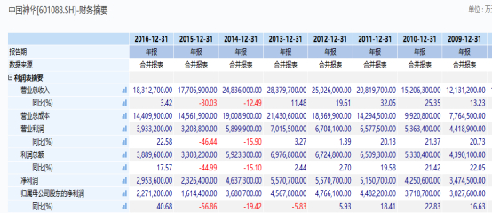 最为明显的是中国神华,公司排名整体大幅后移。此后证明,资金永远是最聪明的子弹,2014年和2015年年报,中国神华实现了2007年以来连续两年营收下滑,这也成为剔除2019年半年报之后,公司唯一的营收同比出现下滑的时间段。