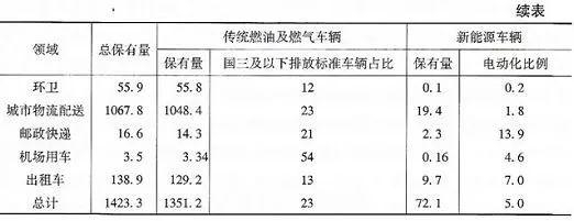 总体来看,到2018年底,城市公交、环卫、邮政快递、城市物流配送等公共服务领域汽车保有量约为1423万辆。 其中,传统燃油及燃气汽车保有量约为 1351万辆,国三及以下排放标准汽车占比为23%左右,亟须进一步推进高排放车辆的报废淘汰; 新能源汽车保有量约为 72万辆,占总保有量的5%左右,电动化比例总体较小,未来市场潜力巨大。