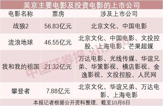 中国证券报(ID:xhszzb)记者注意到,北京登峰国际与吴京深度绑定,该公司基本上参与了吴京2015年之后的大多数主演电影。
