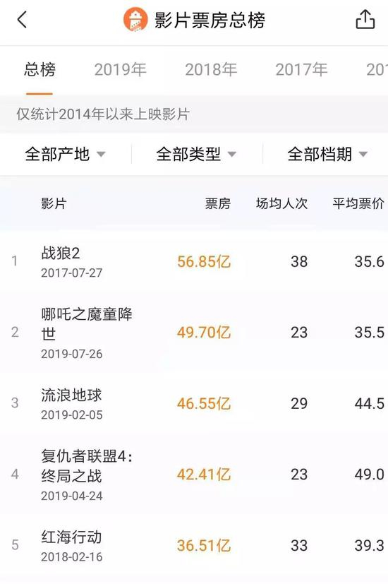 今年春节档开创科幻片纪元的《流浪地球》尽管上映首日票房成绩平平,但在口碑的影响下实现逆袭。最终该片以46.55亿元成为中国影史票房第三位的影片。