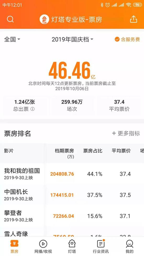 文投控股10月7日晚公告表示,截至2019年10月6日24时,公司投资于《我和我的祖国》所产生的票房分账收益暂为185万元至205万元之间。