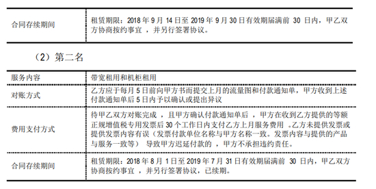①外租机柜约 1,200 个。外租的机柜数量会根据客户的需求浮动变化,截至 2019 年 8 月 31 日,外租机柜已达 1,300 个。