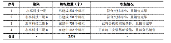 ②已建成机柜和在建可预先销售机柜合计 2,432 个。其中,已交付机柜 1,212 个,在建可预先销售机柜 1,220 个,具体情况如下: