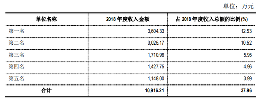唯一网络 2018 年度销售收入 28,758.13 万元,大客户销售占比相对较高,前 五大客户收入 10,916.21 万元,占比 37.96%。
