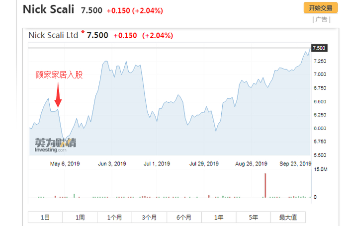 但在今年9月5日,顾家家居却以6.65澳元/股的价格清仓了Nick Scali的股票,较当时7澳元/股的股价折价5%。
