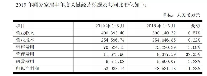 而通过不久前顾家家居对交易所问询进行的回函,我们发现,如果刨除掉2018年收购标,顾家家居2019年上半年的营收为40.04亿元,同比仅增长0.57%。