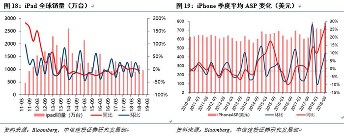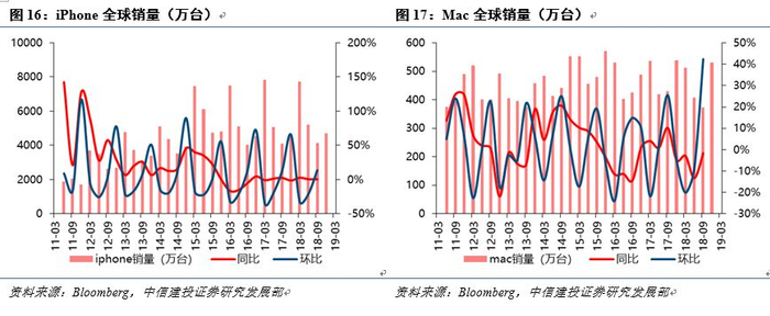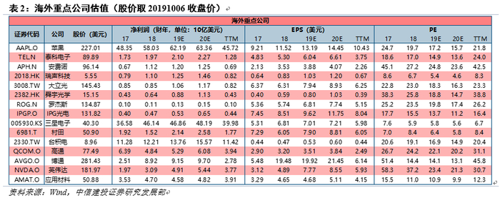 随着下半年移动终端旗舰机排产及上市高峰到来,产业链进入年内景气度高峰。从龙头公司月度营收来看,大立光9月营收环比略增2%同比大增20%,臻鼎环比大增22%同比增长7%。从终端情况来看,iPhone年内总体备货或有同比小幅下滑,但定价较低的iPhone 11上市比去年XR更早,同时销量增幅明显;而Mate30等本土旗舰机对产业链亦有积极带动。我们认为经历年内备货高峰后,短期产业链仍有业绩分化压力,长期仍建议重点关注受益于5G创新的细分行业,包括新型天线、射频前端、高频高速材料/PCB、光学等,重点推荐立讯精密、卓胜微、大族激光、生益科技、华正新材、鹏鼎控股等。