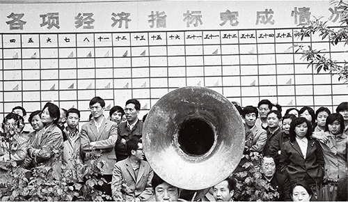 1987年,陕西宝鸡县,国营企业职工庆贺超额完成经济指标。(fotoe)