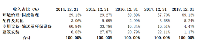 据2007-2009审计报告披露,公司的行业性质及主要产品系制造和销售带式运送机、螺旋输送机等环保器械产品。而根据公司2019上半年审计报告披露的公司主营业务,除去环保装备的生产研发以外,新增了固废治理业务,公司亦将业务伸向了公司下游产业。