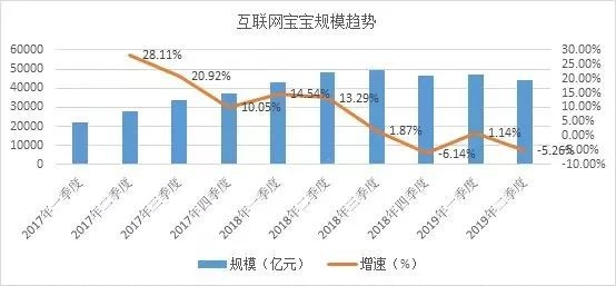 收益率持续下降,也造成规模缩水。数据显示,2019年二季度末,78只“宝宝”对接的货币基金总规模为4.44万亿元,较一季度末下降了5.26%。