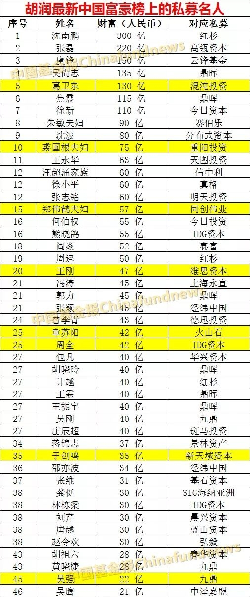 可能有少部分私募富豪未被统计进去