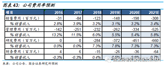 由于整个产业链价格下行且竞争较为激烈,毛利率将承压,预计2019-2021年为39%/38%/37%。