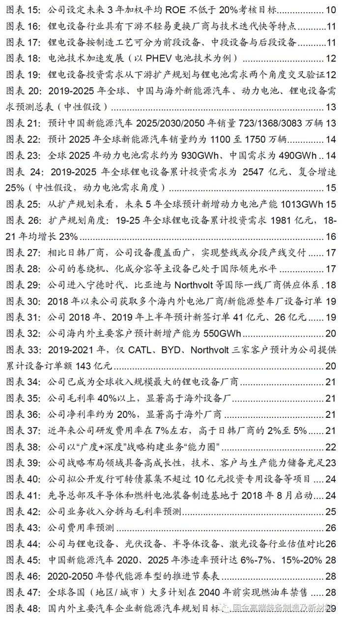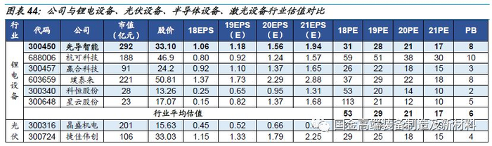公司是国内乃至全球锂电设备龙头厂商,将显著受益于下游电池厂商扩产浪潮。同时,公司从“广度+深度”两个层面战略布局光伏设备、燃料电池设备、半导体设备、智能物流等业务,已初步具备平台型公司价值,未来有望将锂电设备成功经验复制至其他领域。我们认为,相比于业务较单一的设备厂商,公司应享有一定的估值溢价,给予更高的估值水平。