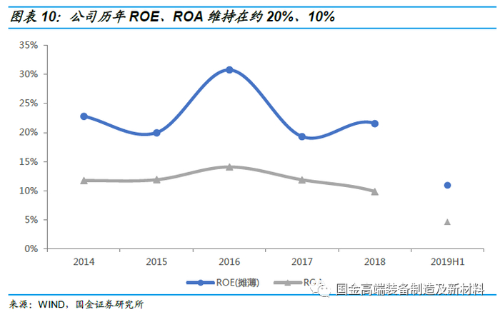 ROE、ROA维持高水平。近5年公司平均ROE为23%、平均ROA为12%;2019年上半年公司ROE为11%、ROA为4.6%,与上期基本持平。