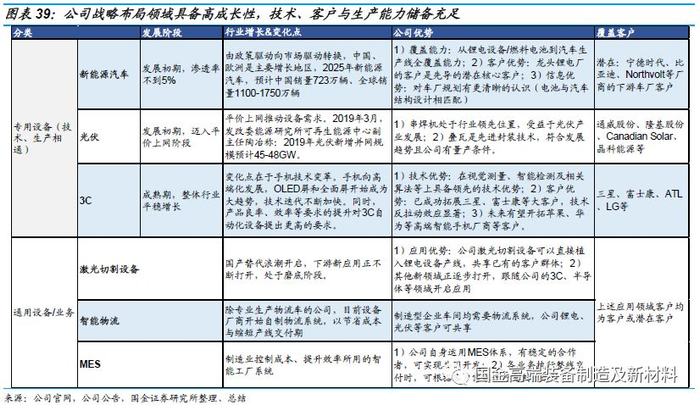 公司前瞻布局的新能源汽车、光伏、3C与半导体等领域正处于发展初期或者技术变革期,成长空间大。目前,公司在部分环节已具备领先技术与客户优势。
