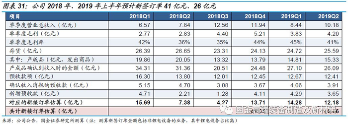 预计公司2018年、2019年上半年新增订单约为41亿元、26亿元。