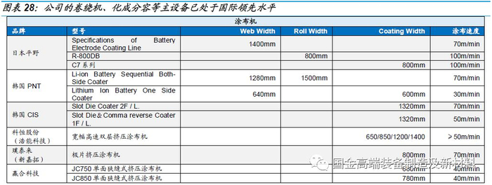 公司卷绕机、化成分容等主设备已处于国际领先水平。经过对国内外主要厂家锂电设备的性能指标对比,我们看到,公司在涂布机、卷绕机与化成分容等核心设备领域发展较为成熟、处于国际领先水平。以卷绕机为例,公司的圆柱形电芯卷绕机单机产能达30PPM,高于日本CKD的28PPM,处于国际领先水平。