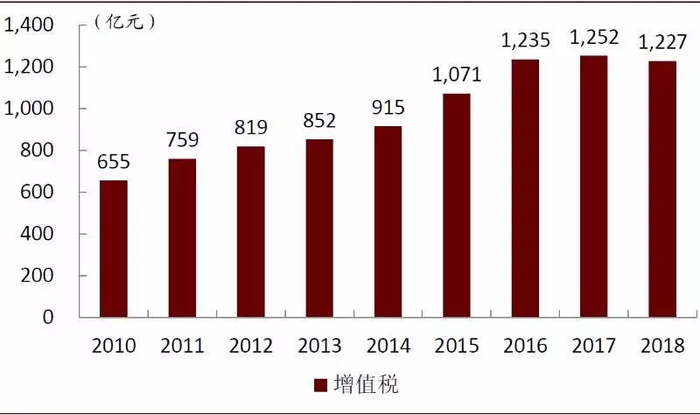 消费税是我国第四大税种,将消费税增量划归地方将拓展地方政府收入来源。2018年国内消费税1.06万亿元,约占当年税收7%,是我国税收中仅次于国内增值税、企业所得税和个人所得税的第四大税收来源。此外,进口货物也要缴纳消费税。2018年进口产品消费税、增值税合计1.68万亿元,考虑消费税仅对部分商品征收,1.68万亿元中可能只有一小部分来自消费税。目前消费税收入全部归中央所有,将增量消费税下划地方将为地方政府带来新的收入来源。