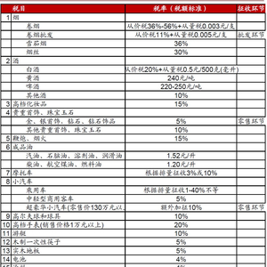 目前酒类行业的消费税基本在生产环节征收。1)白酒按照出厂不含增值税价格的12%征收从价税(20%法定税率,按照60%比例征收),1000元/吨从量税,目前绝大部分白酒上市公司实际消费税率为12%。2)啤酒按照220-250元/吨征收。3)葡萄酒,参考张裕营收的3.4%左右。