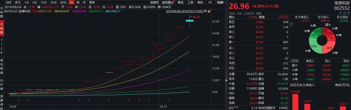 国资入股的消息一出,9月19日开盘后,宝鼎科技开盘涨停,之后5日接连涨停,9月26日涨停解锁后又放量拉升,报涨4.51%,之后又连续涨停。加上9月10停牌前涨停,到10月11日,宝鼎科技已经12个连续交易日次11涨停,一度被称为“妖股”。自今年9月初到现在,宝鼎科技累计最大涨幅已经超过230%。