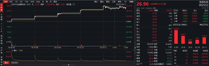 10月11日,宝鼎科技开盘后不到10分钟涨停,这已经是自9月10日至今不到1个月的时间里,出现的第12次涨停,以收盘价计,则是累计11个涨停。