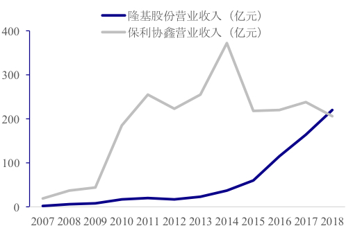 在此背景下,单晶龙头隆基股份迅速崛起,营业收入从2007年的2亿元增至2018年的220亿元,超过多晶龙头保利协鑫成为硅料行业龙头。