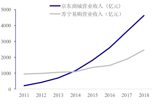 如2010年代电子商务取代线下零售模式,京东商城营业收入从2011年的200亿元增至2018年的4600亿元,超过苏宁电器成为3C零售龙头。