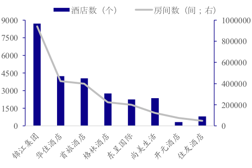 从行业格局看,我国三大酒店集团锦江股份、华住酒店、首旅酒店在酒店数和房间数上,明显领先于其他竞争对手,行业龙头态势稳固。