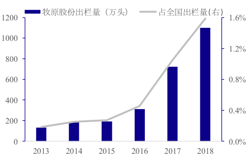 举个例子,养殖产业链头部公司牧原股份出栏量占全国比重从2013年的0.18%大幅上升至2018年的1.6%。