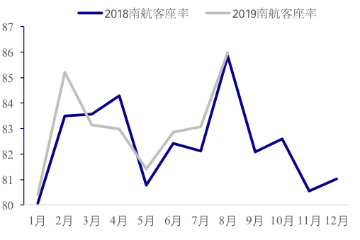 ▼ 南方航空客座率连续3个月