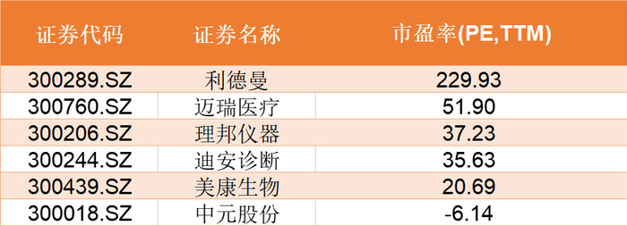 迈瑞医疗上市前曾经对标两家公司,其中江苏企业鱼跃医疗TTM市盈率仅为27.68,另一只医疗器械股票乐普医疗TTM市盈率仅为30.22倍。