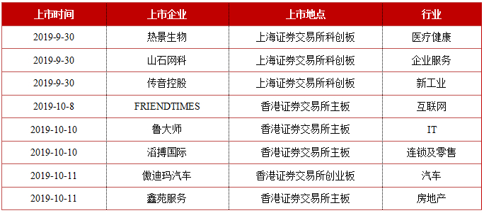 这两周,共有8家企业上市。其中,上海证券交易所3家,香港证券交易所5家。