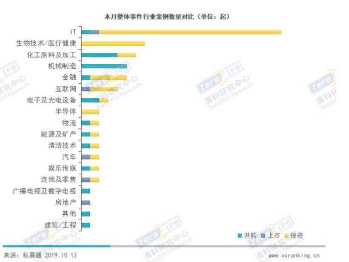 ›本月IT、生物医疗、化工原料及加工行业的投资事件较多。