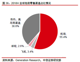 机场渠道免税销售额目前占比行业达55%,但过去几年增速低于行业整体,预计未来将保持与行业同步的增速增长。