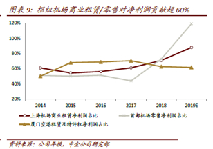 现在这种大型的枢纽机场已经进入了流量变现的阶段。以上海机场为例的话,包含免税这些商业租赁业务,对于收入贡献是不断提升的,大概是50%左右,对利润增长的贡献60-80%这样一个比例。