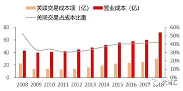 上市公司向集团支付的关联交易成本项主要包括:向集团子公司支付的零售/广告、餐饮资源管理服务费,向安保公司支付的服务费,向能源公司支付的水电能源费等。2018年各项费用分别为10.79亿 / 7.35亿 / 6.58亿,占比为15% / 10% / 9%。