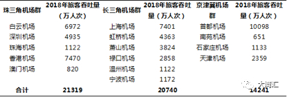 珠三角的话这比较紧凑的就有五六个机场。有香港机场,澳门机场,珠海机场,白云机场,还有深圳机场,是比较比较密集的。京津冀只有首都机场一个,这个运力肯定是不足的。