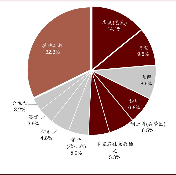 在婴幼儿配方奶粉行业增速放缓背景下,我们看好行业产品结构提升、渠道结构分化趋势带来的细分成长机会,当前行业竞争格局在国家政策引导、行业高端化趋势力下仍有整合空间。我们判断国内品牌力强、产品具备差异化、渠道管理能力强的婴幼儿配方奶粉企业有望进一步获取市场份额,亦看好内资企业凭借渠道下沉、网点精细化管理、本土化消费者沟通和产品高端化重回市场主导地位的机会。