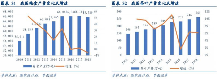 成立26年以来,公司坚持研发投入和技术创新,实现了色选机性能、应用领域全面提升。从光电技术到CCD(数字)技术,从单一的大米色选机拓展到包括农副产品、环保回收、矿产等行业近两百种物料的色选,设备的应用范围逐渐拓展,色选机也逐渐向着智能化、数字化的方向发展。2018年,“尊”“臻”“品”三大系列2018款人工智能色选机发布,美亚人工智能色选机磁悬浮喷阀、电路板、分选箱等部件均实现全自动化生产,进一步提升了整机品质。性能上,美亚通过极简的操作界面,大大增强了操作的便捷性;每一种杂粮色选机都能拥有量身定制的分选算法,并能实现分选方案的一秒切换;此外,美亚还实现了对产线上色选机的远程实时管控。2019年,美亚率先基于未来5G通信技术布局色选机的智慧系统,进一步推进光电领域数字化转型。3月底,美亚重磅推出全方位研发制造创新平台——MAGA(美亚先进性全球架构/Meyer Advanced Global Architecture),致力于研发、设计、生产、供应、服务全产业链体系的全面变革,目的是用更科学、更高效的方式制造更好的分选及检测设备,从源头实现产品标准化、模块化,把产品经济性、稳定性、智能化推向新的极致。(二)需求稳中有增1、国内色选机市场确定性强国内粮食产量基本稳定,茶叶产量稳重有增。我国粮食产量在自2010年开始快速增长,2015年起增速开始下降,产量保持稳定。据国家统计局数据,2018年底,粮食总产量达到6.58亿吨,2011-2018年的复合增速为1.6%,茶叶产量也逐年上升。我国人口基数大,粮食需求量巨大,国内色选机市场确定性较强。基于庞大的基数以及粮食、茶叶产量的不断增加,国内色选机需求预计稳中有增。