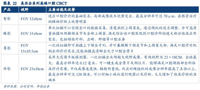 除口腔之外,CBCT机还可以应用于包括外科、骨科在内的多个其他医学领域。美亚光电在口腔CBCT机制造商内,属于国内少数领先掌握口腔CBCT机技术的设备制造商,具有技术优势,利用该优势,美亚光电同时提出了向耳鼻喉科、骨科的研发计划,预计将在未来几年推出。